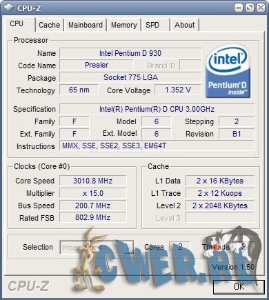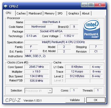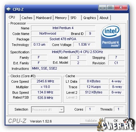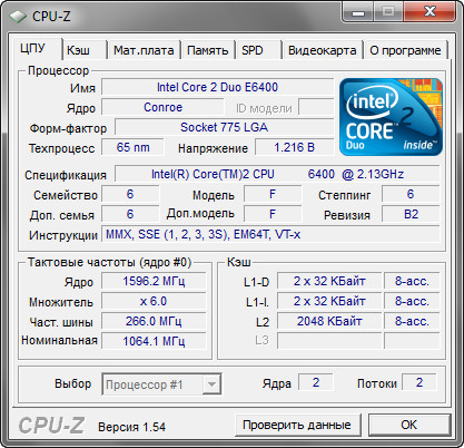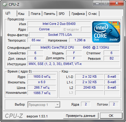 Иногда процессоры с одним и тем же наименованием скрывают неодинаковую «начинку» – различные ядра с разными степпингами, возможностями, разными частотами при одинаковом рейтинге, произведенные по разным техпроцессам и т. д. Часть этих данных можно было бы получить, изучив надписи на крышке процессора, но они, как правило, надежно скрыты в системном блоке под кулером и слоем термопасты. Поэтому значительно более удобным способом получения подобной информации будет применение утилиты CPU-Z.
