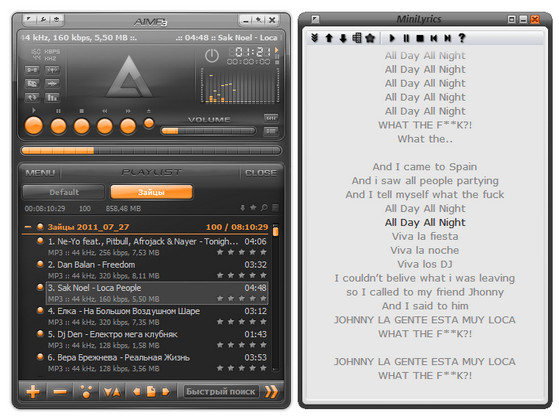Minilyrics - небольшая надстройка над наиболее популярными медиа проигрывателями, в том числе для Winamp, Aimp, Windows Media Player, iTunes, foobar2000 и многих других известных медиа-плееров, позволяющая видеть текст любых песен которые на данный момент проигрываются.