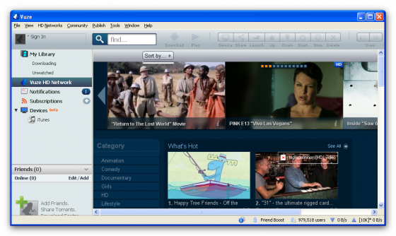 Vuze - это популярная программа для работы в Peer 2 Peer сети BitTorrent со значительно более богатым ассортиментом функций, чем фирменный клиент сети. По большому счету все богатство функционала заключается в более продвинутом подходе к управлению закачками, чему способствует симпатичный и удобный интерфейс. Немаловажным достоинством является наличие функций трекера — возможность поиска torrent файлов. Стоит упомянуть поддержку плагинов, кои можно скачать с сайта разработчика.