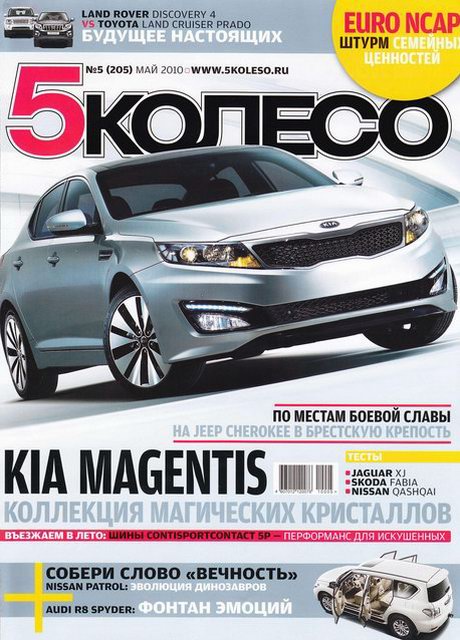 5 Колесо - один из самых популярных автомобильных журналов в России, имеющий многолетнюю успешную историю развития. Это единственное на рынке интерактивное автомобильное издание, которое создается вместе с читателями. Концепция издания - "Создаем журнал вместе!" - позволяет знакомить аудиторию не только с мнениями профессионалов, но и c опытом тысяч компетентных автолюбителей. Издание рассчитано на широкий круг автолюбителей, автомобилистов-профессионалов, представителей автомобильного бизнеса. Одной из главных особенностей журнала являются непосредственное участие читателей в испытаниях автомобилей, представленных на российском рынке, а также самый полный каталог автомобилей, официально продаваемых на российском рынке.