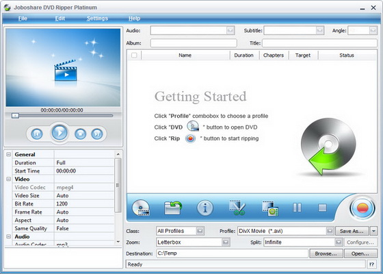 Joboshare DVD Ripper Platinum - удобная программа для быстрого и качественного конвертирования DVD в большинство популярных видео и аудио форматов, включая AVI, MPEG4, WMV, DivX, RM, MOV, XviD, 3GP, FLV, SWF, MP3, WMA, WAV, M4A, AAC, AC3, и т.д. Позволяет конвертировать фильмы для таких устройств как iPod, Zune, iPhone, Apple TV, PSP, Xbox 360, PS3, MP4/MP3 Player, Smart Phone, Pocket PC, PDA, Mobile Phone, Archos, Archos AV500, Archos AV700, Archos GMini402, iRiver PMP-100, Creative Zen Vision, и т.д.