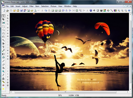 Графический редактор для редактирования и обработки фотографий и других графических элементов. Поддерживает работу со слоями, позволяет добавлять к фотографиям не графические элементы — текст и др., может импортировать прозрачные растровые рисунки, копировать векторную графику из любых внешних редакторов включая Corel Draw и Adobe Illustrator.