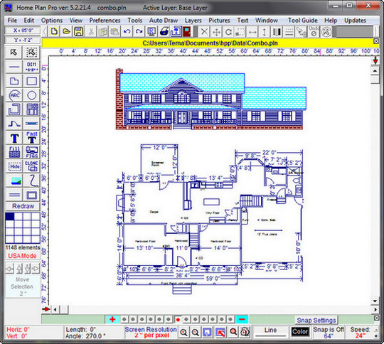 Home Plan Pro - отличная программа для быстрого и легкого черчения плана помещений, мест и архитектурного дизайна. Программа предлагает множество различных инструментов, которые помогут вам начертить план вашего дома, квартиры, жилых помещений и т.д. Пользователю предлагаются такие инструменты, как линии, овалы, прямоугольники, черчение стен, дверей, окон, арок, кирпичных стен, вставка изображений, текста, дублирование предыдущего элемента и многое другое.