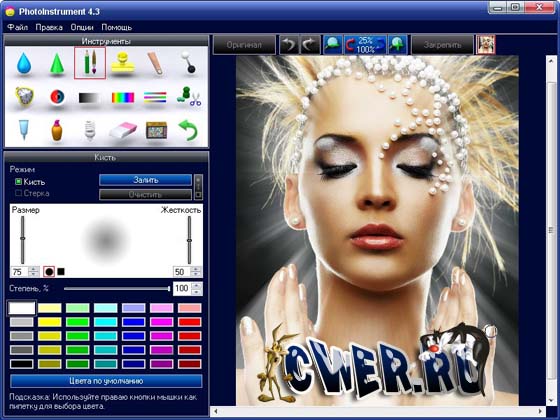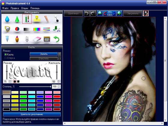 PhotoInstrument - волшебный и легкий редактор для обработки портретов цифровых фотографий. От Очистителя кожи до придания ему гламурного вида "глянцевых журналов", попутно включая инструменты для: ретуширования, удаления красных глаз, сглаживания морщин, увеличения чёткости, коррекции цвета и многого чего еще, для приданию портрету совершенного вида и желаемой привлекательности.