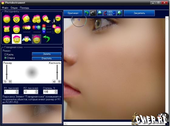 PhotoInstrument - Волшебный "Легкий" Редактор для обработки портретов цифровых фотографий. От Очистителя Кожи до придания ему Гламурного Вида "глянцевых журналов", попутно включая инструменты для: ретуширования, удаления красных глаз, сглаживания морщин, увеличения чёткости, коррекции цвета и многого чего еще, для приданию портрету совершенного вида и желаемой привлекательности.