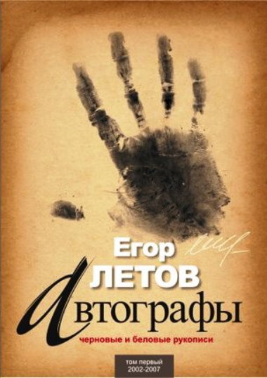 На обложке - отпечатки рук Егора Летова из архива Юлии Шерстобитовой. Первый из трёх томов черновых и беловых рукописей Егора Летова включает в себя факсимиле автографов песен и стихов 2002-2007 гг., а также фотографии, авторские рисунки и коллаж.