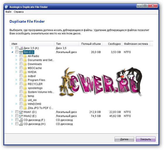 Auslogics Duplicate File Finder - отличный инструмент для поиска дубликатов файлов на Вашем компьютере. Файлы-дубликаты не только бесполезно занимают место на жестком диске, но и ухудшают быстродействие компьютера. Удаляя дубликаты файлов, Вы сможете значительно сократить время необходимое для дефрагментации жесткого диска, а также минимизировать время необходимое для полного сканирования компьютера антивирусной программой.