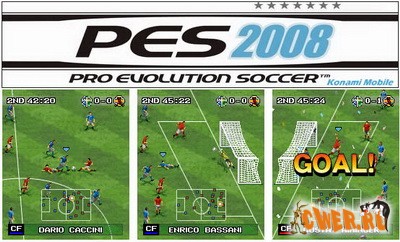 Игра для мобильных телефонов. Великолепный футбол от компании Konami. Реалистичная графика, убойный геймплей. Атмосфера футбольного поля, позволят полностью окунуться в игру. Размеры экранов: 128х160, 176х204, 176x208, 176х220, 240х320.