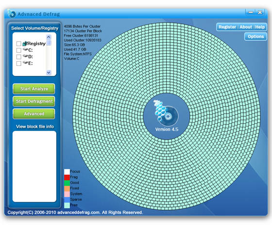 Advanced Defrag - профессиональная и мощная программа, призванная вылечить медлительность вашего компьютера и предотвратить возможное падение системы. Эта программа в своей работе применяет самые передовые технологии, что позволяет вам быстро проанализировать состояние дисков и убрать полностью и надежно всю найденную фрагментацию в системе, освободив массу рабочего дискового пространства и доведя до максимума производительность всего за несколько минут. Advanced Defrag определенно вернет вам здоровый и быстрый компьютер точно таким, когда он впервые появился в вашем доме!