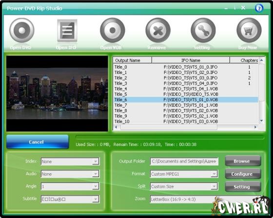 Power DVD Rip Studio поддерживает разные виды конверсии, вы можете выделить все треки с DVD и программа самостоятельно один за другим скодирует их в нужный вам формат, после чего вы сможете наслаждаться цифровым видео и аудио на своём портативном устройстве.