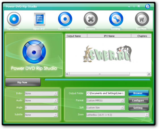 Power DVD Rip Studio – это мощный инструмент конвертирования DVD видеодисков в следующие форматы: AVI, MPEG, WMV, WAV и SVCD… Вы легко можете скопировать DVD в iPod, PSP, iPhone, Zune, и на мобильный телефон.