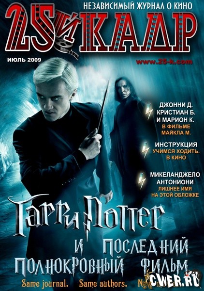"25-й кадр" - периодический журнал о кино и не только, создан коллективом людей, которые любят смотреть и писать про кино и устали читать чужие журналы. Издание подойдет для ценителей кино, которым надоела много рекламы и много "воды" в тексте. Если для вас Спилберг и Бэй - не вершина кинематографа, то вам будет о чем почитать. Если вершина - узнаете много нового.