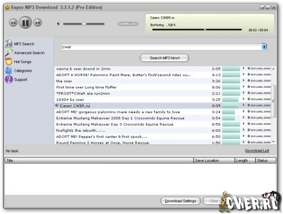 Super MP3 Download - прямой доступ к бесплатной музыке. Этот mp3 загрузчик надолго обеспечит Вас музыкальными композициями. В мире существуют тысячи групп и исполнителей, предлагающих свое творчество бесплатно. Шанс найти среди них что-нибудь по душе очень велик. Чтобы облегчить Ваш поиск, программа предложит топ сто недели и лучшее в четырнадцати жанрах. Вы сможете сначала прослушать мелодию и лишь потом сохранить её на жесткий диск.