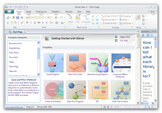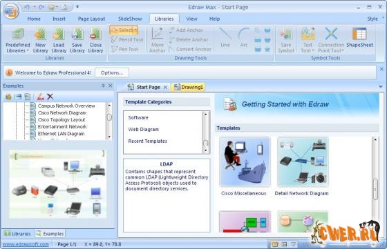 Edraw Max - многофункциональная программа для рисования диаграмм, графиков, бизнес планов и т.д. Программа обладает функциями, которые делают её идеальным решением не только для профессионально-выглядящих блок-схем, организационных схем, сетевых диаграмм и бизнес карт, но также и для построения планов, UML диаграмм, трудового процесса, структур программ, сетевых диаграмм, чартов и графики, указательных карт и диаграмм баз данных.