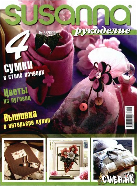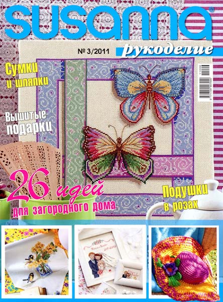 "Susanna. Рукоделие" - журнал по рукоделию, посвященный вышивке. В номере представлены разнообразные сюжеты для вышивки подушек, скатертей, салфеток, занавесок, полотенец, сумок, картин – "Подсолнухи", "Морское дно", "Романтичные малышки", "Попугаи", "4 времени года", "Коктейли из фруктов", вышитые медвежата и др.