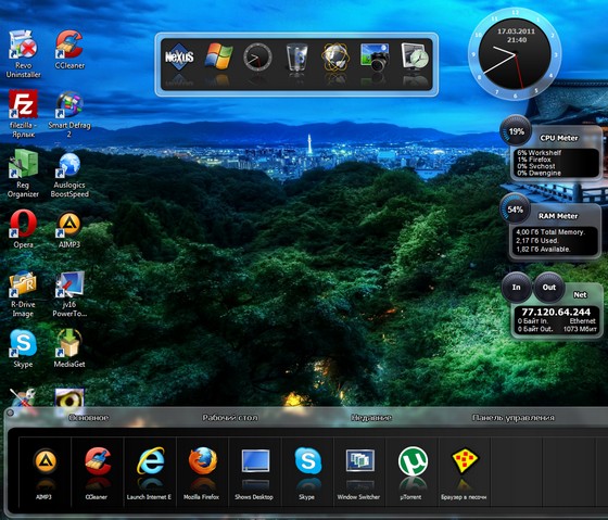 Winstep Nexus - замена обычной оболочке Windows почти со всеми комфортными функциями, которых время от времени не хватает в обычной оболочке. Скачав пакет на cwer.ws, вы получите в управление несколько модулей (NextSTART, WorkShelf, FontBrowser, NeXuS), каждый из которых обладает собственным оригинальным комплектом функций. К примеру, модуль NextSTART полностью заменяет меню Пуск, Панель задач и системную область уведомлений (трей). Модуль WorkShelf может заменить Рабочий стол, FontBrowser - комфортный просмотрщик шрифтов, NeXuS - многоуровневая панель быстрого доступа к часто используемым приложениям.
