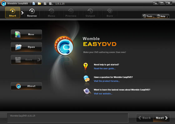 Womble EasyDVD - это инструмент для простого и быстрого создания DVD. Создавайте свои собственные DVD всего парой щелчков мышью. Womble EasyDVD соединяет в себе продуманную технологию ренедеринга MPEG-2 видео и гибкую поддержку шаблонов DVD меню. Программа подойдет как профессионалам, так и новичкам.