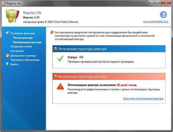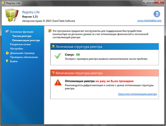 Утилита для работы с системным реестром обязательно должна быть под рукой у каждого, кто желает, чтобы его система работала стабильно, без ошибок. Для этой цели подойдет программа Registry Life - инструмент для выявления и исправления ошибок, возникающих в системном реестре в процессе работы Windows. Registry Life отыскивает бесполезные записи в реестре, которые не используются в работе, и дает возможность их удалить. Кроме этого, программа следит за фрагментированностью базы данных и, в случае необходимости, уменьшает размер реестра, дефрагментируя и сжимая его. Программа определяет системные ошибки реестра в более чем десяти различных категориях. Registry Life позволяет оптимизировать системный реестр в автоматическом режиме при загрузке системы или по расписанию.