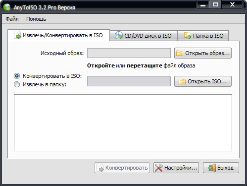 Если есть необходимость преобразования образов CD/DVD-дисков из специфических форматов в универсальный общепринятый ISO - вам поможет простая и функциональная программа AnyToISO Converter Pro. Этот конвертер решает специфические проблемы, связанные с работой с образами дисков, особенно это касается коммерческих продуктов, которые стараются создавать образы в своем формате и не всегда у пользователя есть возможность и желание устанавливать, по его мнению, не нужные программы. Например, образ в формате NRG, можно записать на диск только из Nero. AnyToISO Converter Pro позволяет обойти это ограничение и свободно работать с образами любых форматов.