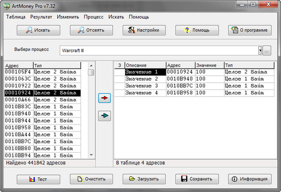 Программа ArtMoney предназначена для редактирования параметров в компьютерных играх, для получения бесконечных денег, жизней, патронов и т.п. Она умеет сканировать память или файлы игры для поиска каких-то определенных значений (деньги, ресурсы и т.д.). Таких значений может быть много и надо выбрать нужные, поэтому поиск разделяется на два этапа - поиск значений и отсев ненужных значений. В итоге получаем адреса, в которых находятся числа, и их можно изменить на нужные.