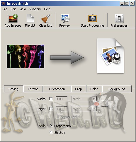 Image Smith - новая мощная программа для обработки графических изображений в пакетном режиме. С помощью включенных в программу функций вы сможете с легкостью масштабировать, изменять цвета, конвертировать между графическими форматами и сглаживать изображений в пакетном режиме. Программа может работать с несколькими типами графических файлов и позволяет сохранять в стандартные общепринятые форматы, такие как JPG, GIF и PNG. Вы также сможете воспользоваться предустановленными настройками для обработки изображений, чтобы, например подогнать размер ваших изображений под один из стандартных форматов веб баннеров. Также в программу включено множество мощных функций, таких как изменение уровней цветов, применение различных эффектов, инвертирование, изменение контраста и многое другое. Программа обладает приятным и легким в использовании пользовательским интерфейсом.