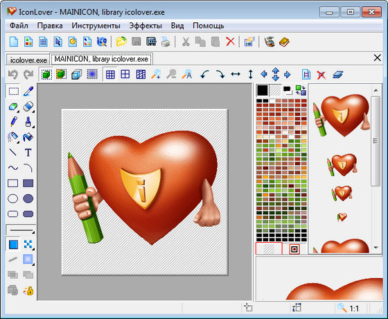 IconLover - простая в использовании программа для создания и редактирования графических иконок и курсоров. С помощью данной утилиты вы сможете выразить свою творческую натуру и создать ваши собственные особенные иконки и курсоры, преобразовать готовые картинки в иконки, придать уникальный вид вашему рабочему столу, настроить изображение разных каталогов.