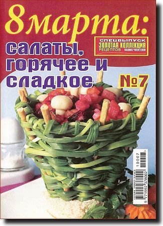 Всех дорогих женщин - с праздником! Специальное приложение к газете "Золотая коллекция рецептов" составляется на основе писем читателей, а потому вы не встретите здесь рецептов, кочующих из книжки в книжку, из журнала в журнал, а только - оригинальные, самобытные идеи из гущи народа.