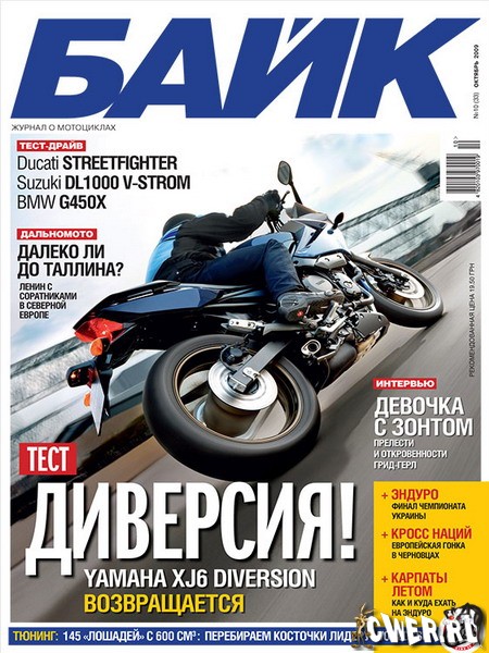 "Байк" – журнал о мотоциклах и мотоциклистах. Обзоры, тест-драйвы мотоциклов, тюннинг, впечатления от практического использования конкретных мотоциклов. Советы начинающим и опытным байкерам. Обзоры мотомаршрутов по Украине и России.
