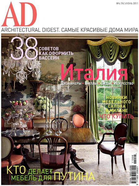 Журнал AD (Architectural Digest) — ведущий международный журнал об архитектуре и дизайне. Издается в Америке с начала 20-х годов, в России с сентября 2002 года. За долгие годы завоевал репутацию законодателя интерьерной моды, сформировал вкусы нескольких поколений , источник вдохновения в искусстве создания идеального жизненного пространства.