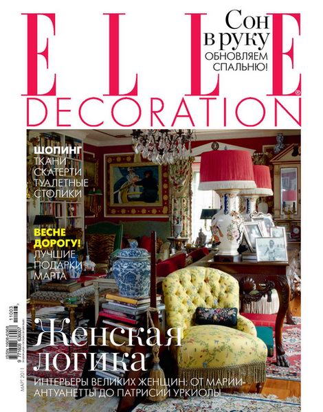 Elle Decoration - самый красивый и полезный международный журнал о современном интерьере, который преследует просветительскую миссию: читатели журнала всегда в центре самых последних тенденций в области дизайна, архитектуры и декорирования пространства.